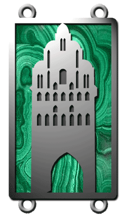 Stadttor als Motivvorlage | Kettenglied: gleiche Sägearbeit mit rückseitigem Malachit (Naturstein) | ||||||